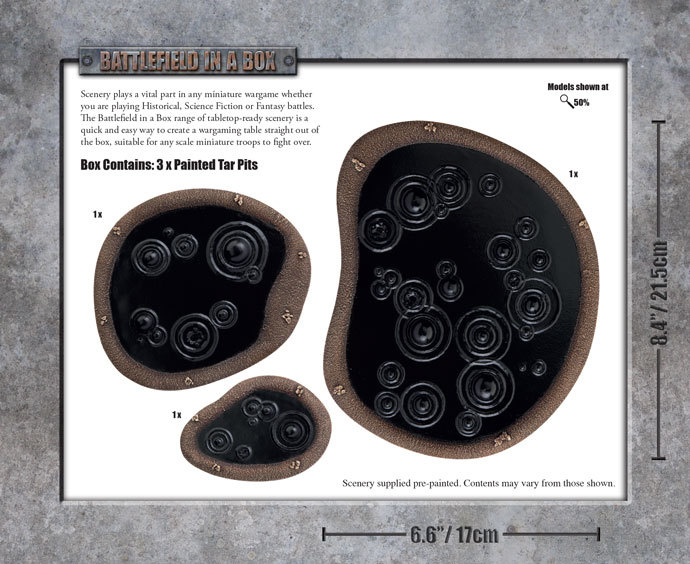 Journey back in time, or to a land that time forgot where Tar Pits line the landscape. Contains: 3 x Painted Tar Pits.