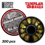 Collection of 300 Templar Cross symbols and signs made of brass. There are 12 different types to choose from, separated in different compartments. They are perfect for adding details to armour, weapons and banners of your models and miniatures or for decorating dioramas. We recommend using cyanocrylate glue in small quantities. Approximate thickness of characters: 0.26mm Size: 1-5mm Quantity: 300 characters (25 units of each character) NOTICE: Due to the small thickness and size of the pieces, some could come out of the separator disk, or change compartment.